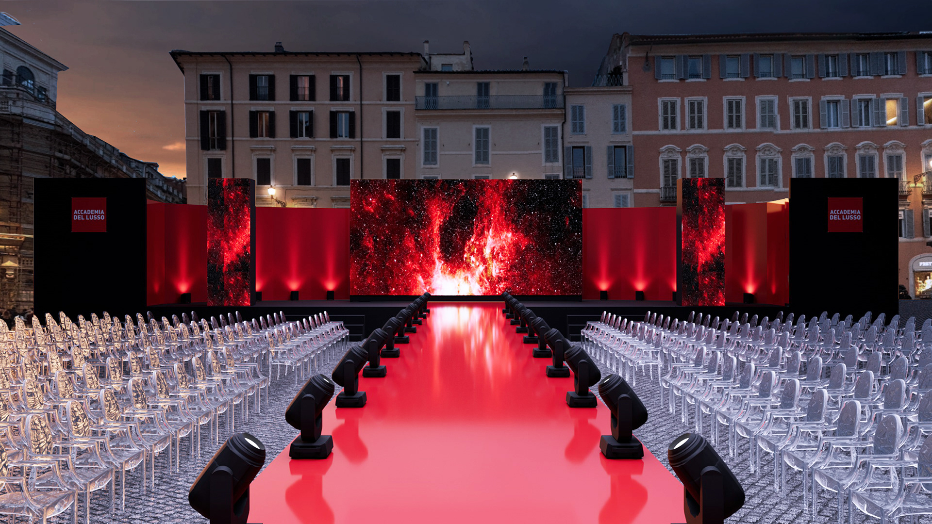 La sfilata evento Fashion & Talents che, come di consueto, prende vita nell'iconica Piazza di Spagna a Roma.