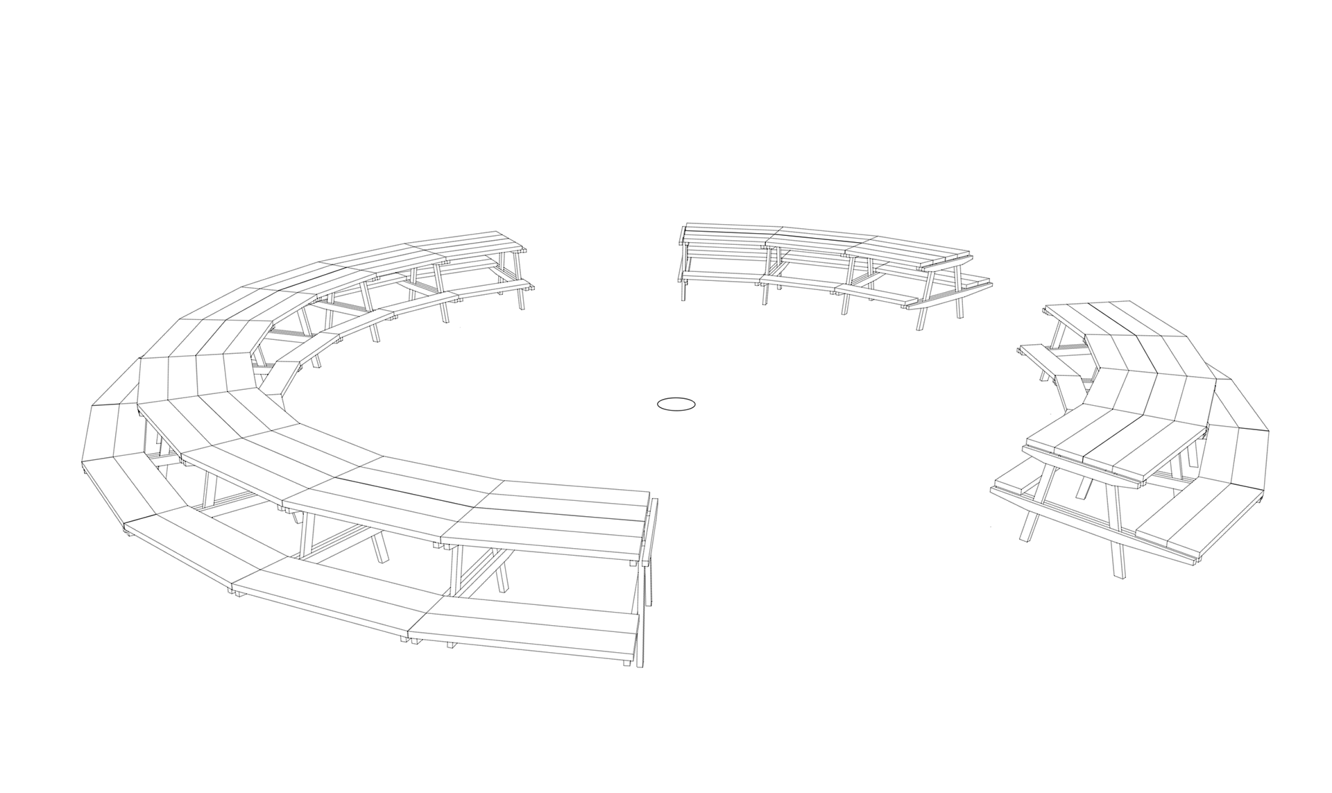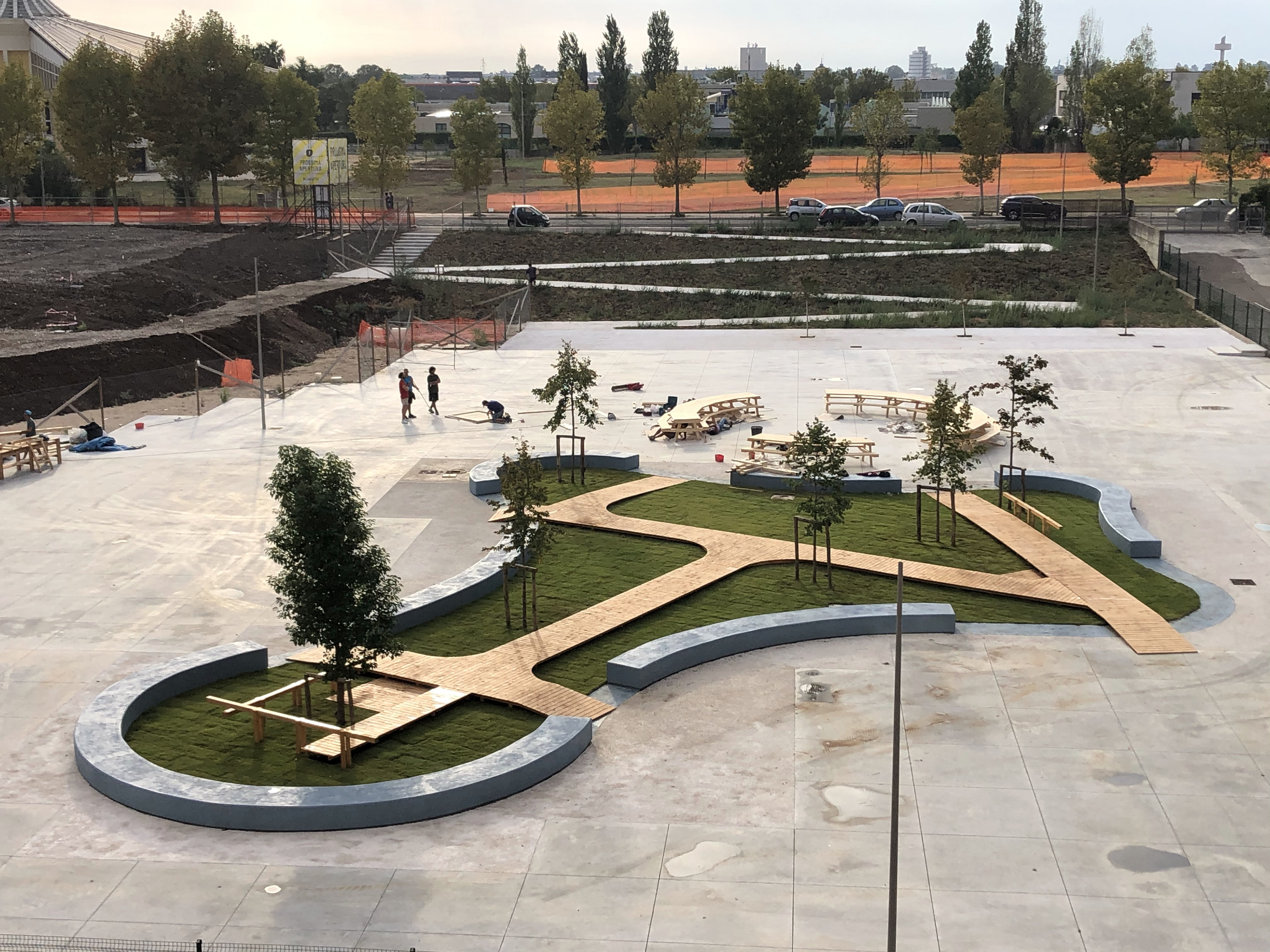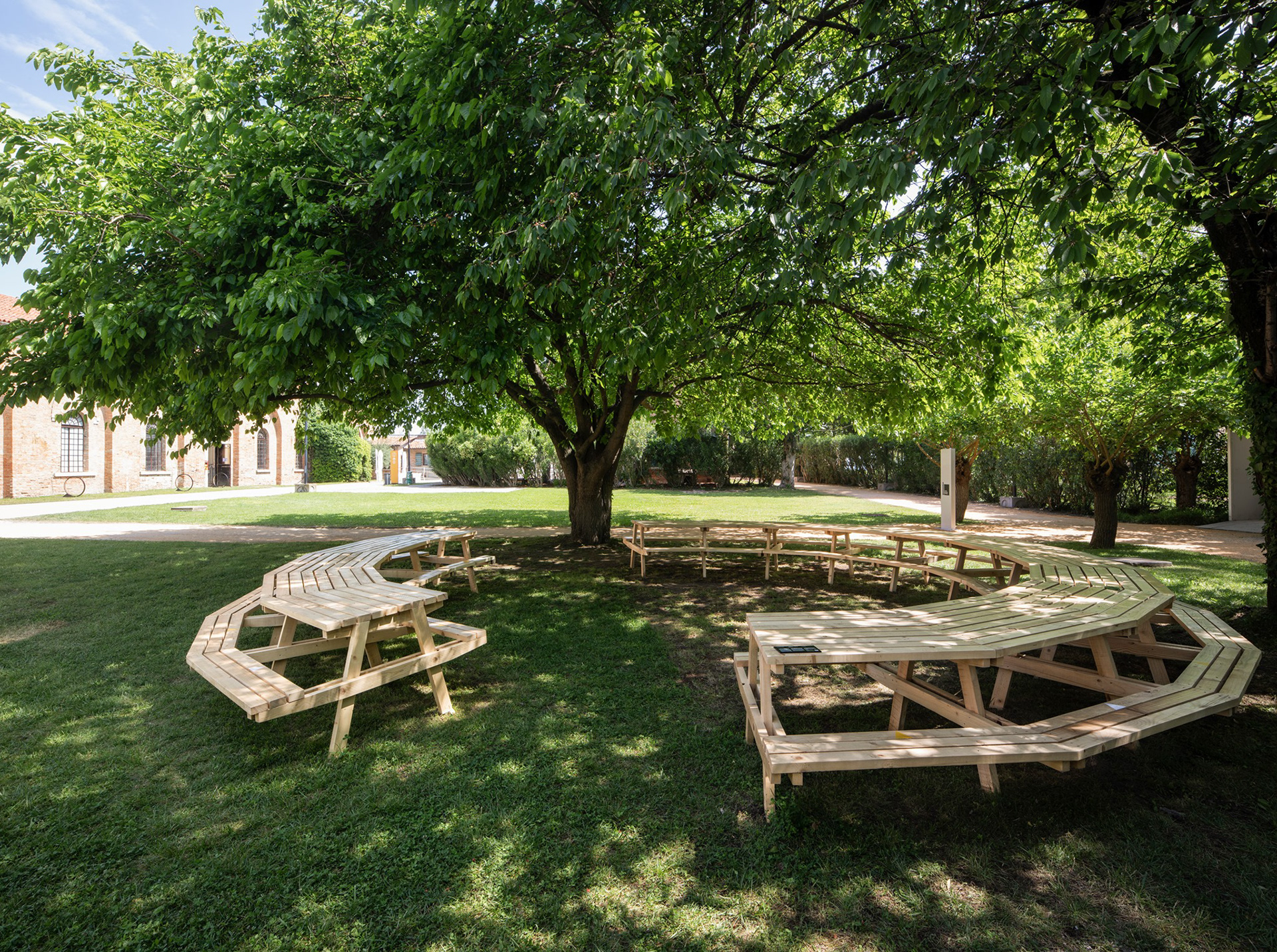 Le immagini si riferiscono ai laboratori tematici di green e food: passerelle sull'oasi verde e un tavolo da pic-nic dal diametro di 12m, esposto successivamente al Padiglione Italia della 17esima Biennale di Venezia