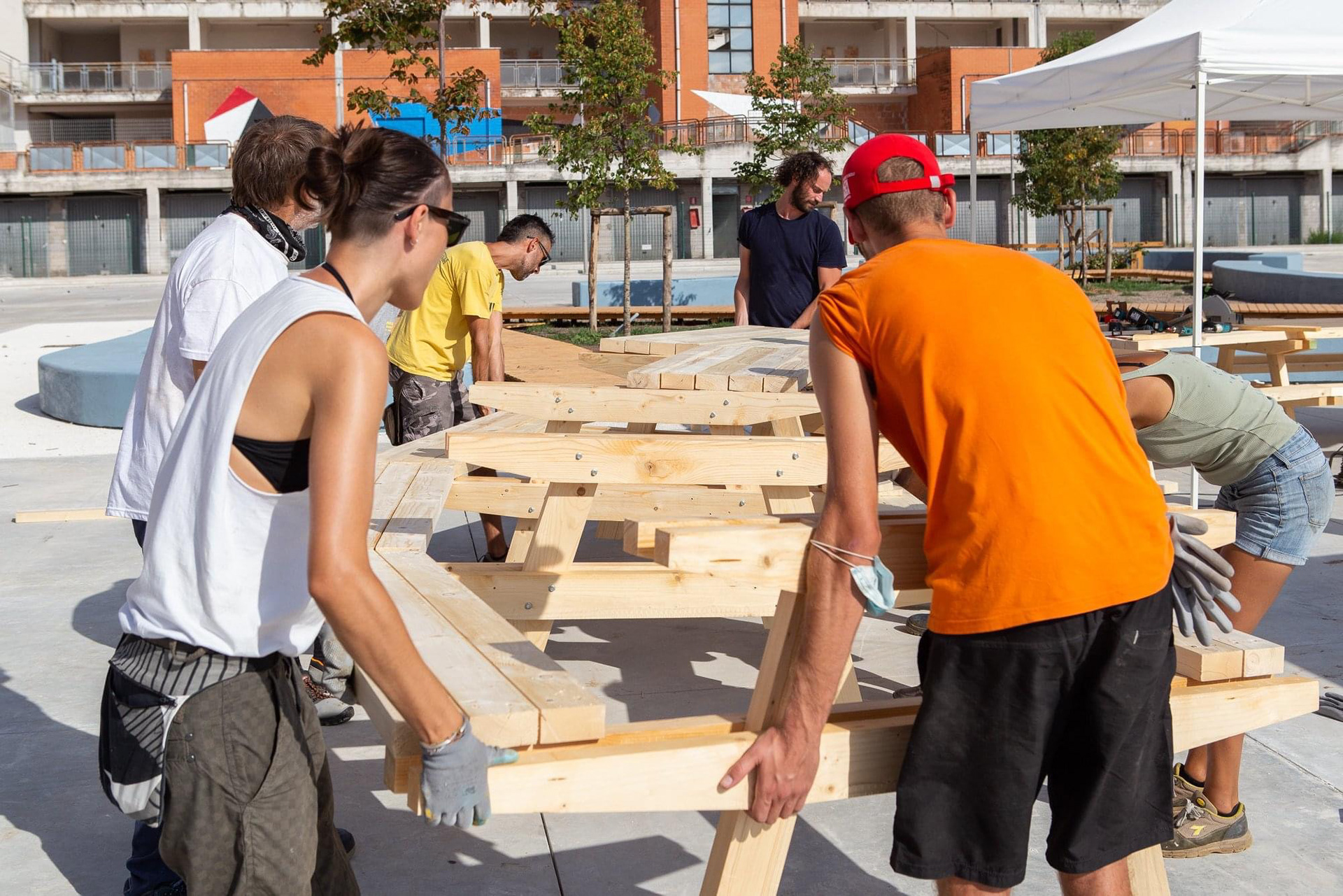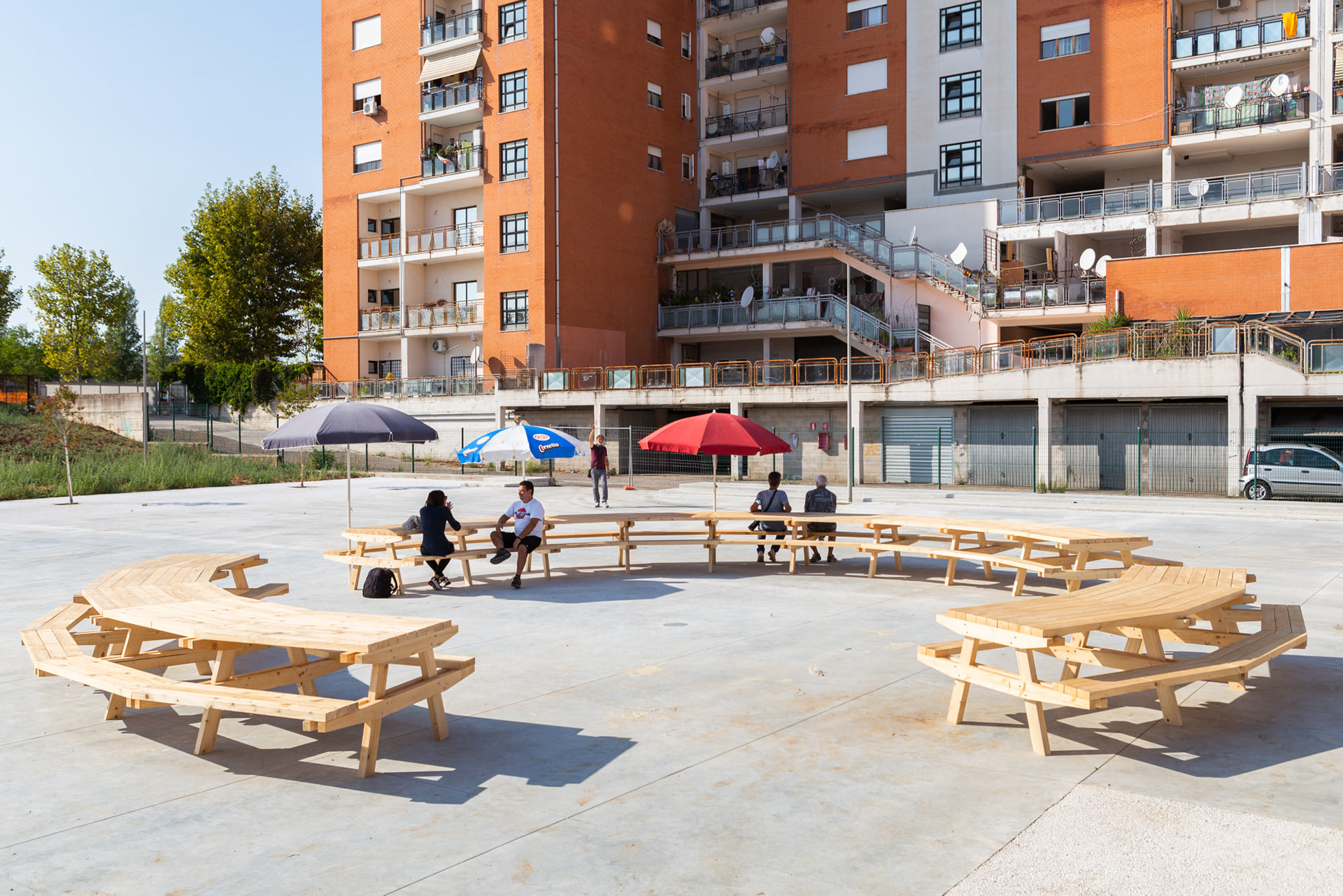 Prossima Apertura è un progetto di riqualificazione integrata del Quartiere Toscanini di Aprilia. Durante gli workshop di autocostruzione sono state realizzate strutture temporanee per stimolare l’immaginario degli abitanti verso possibili usi futuri della piazza.