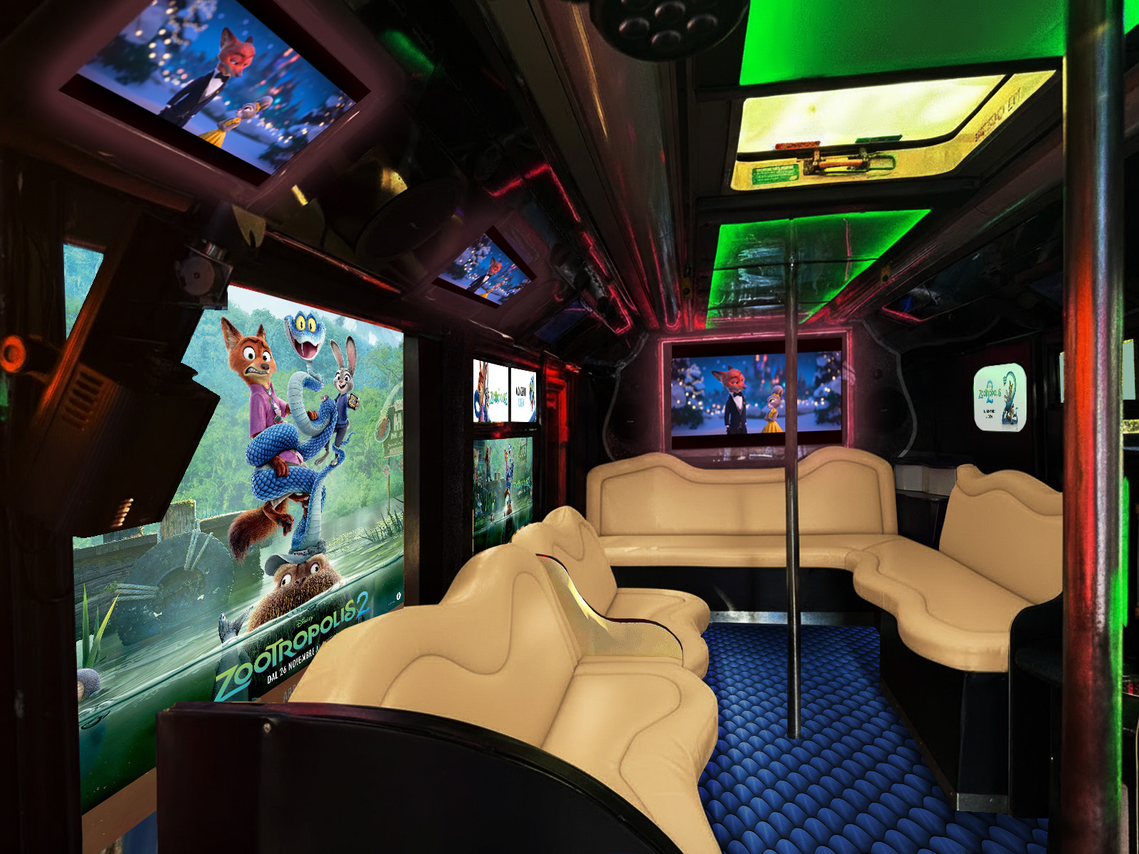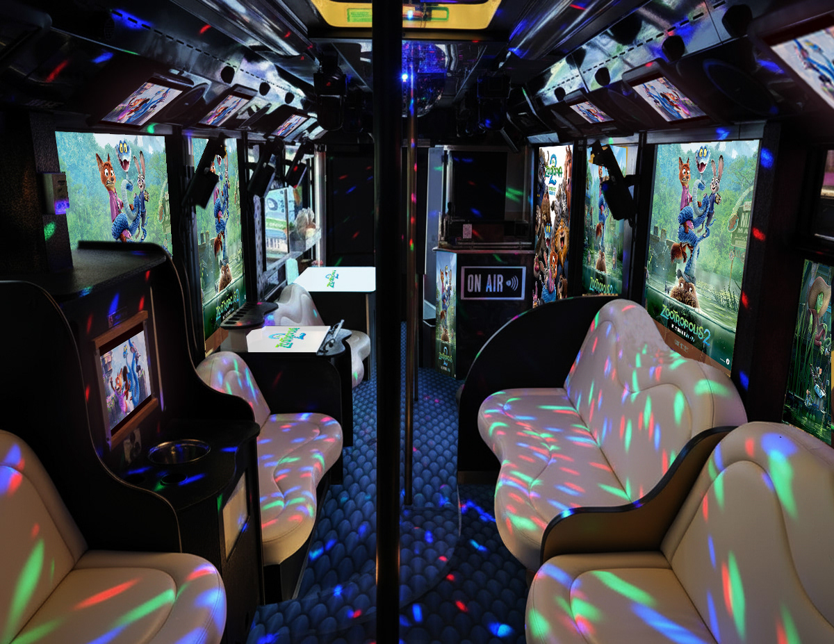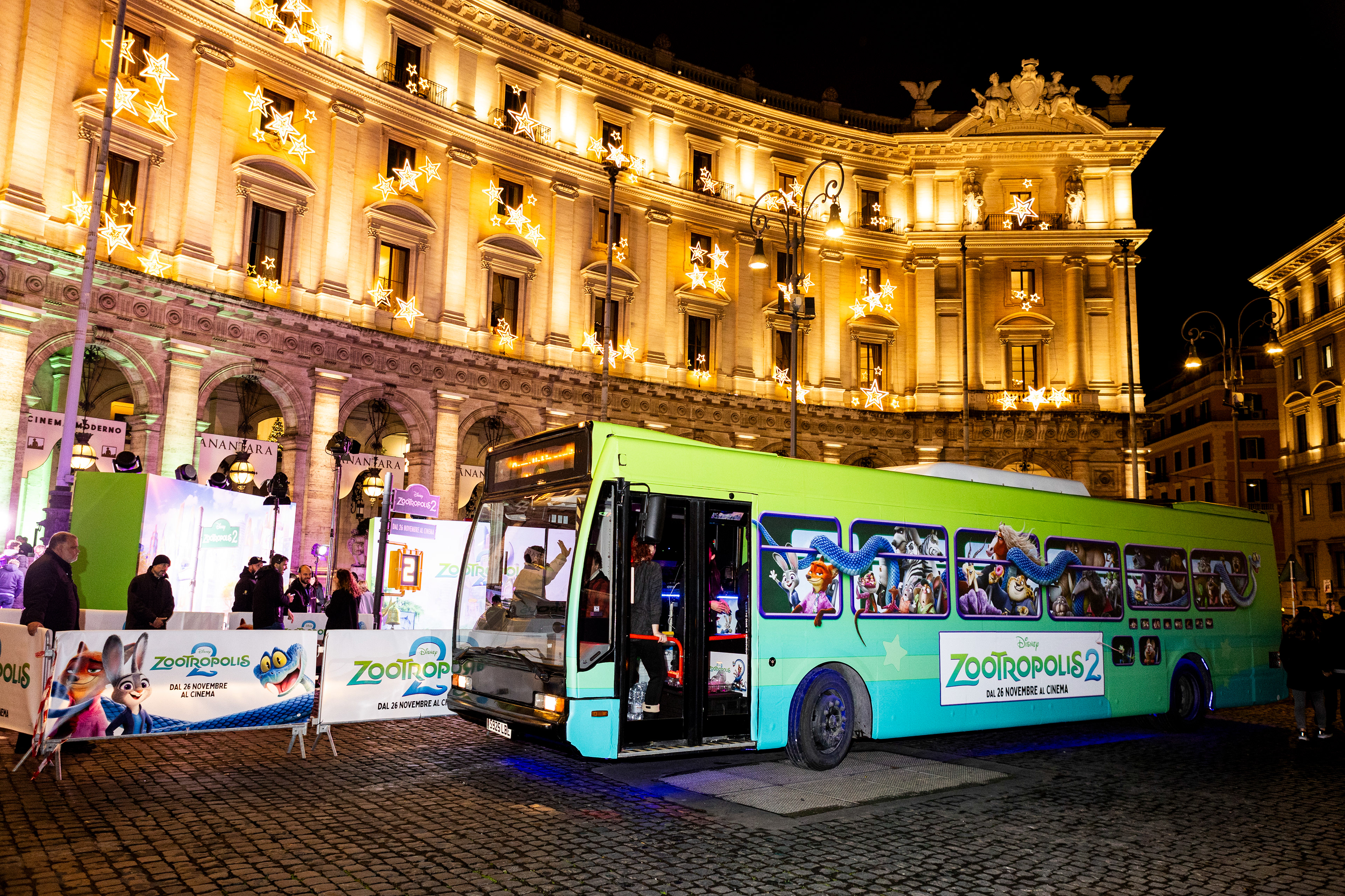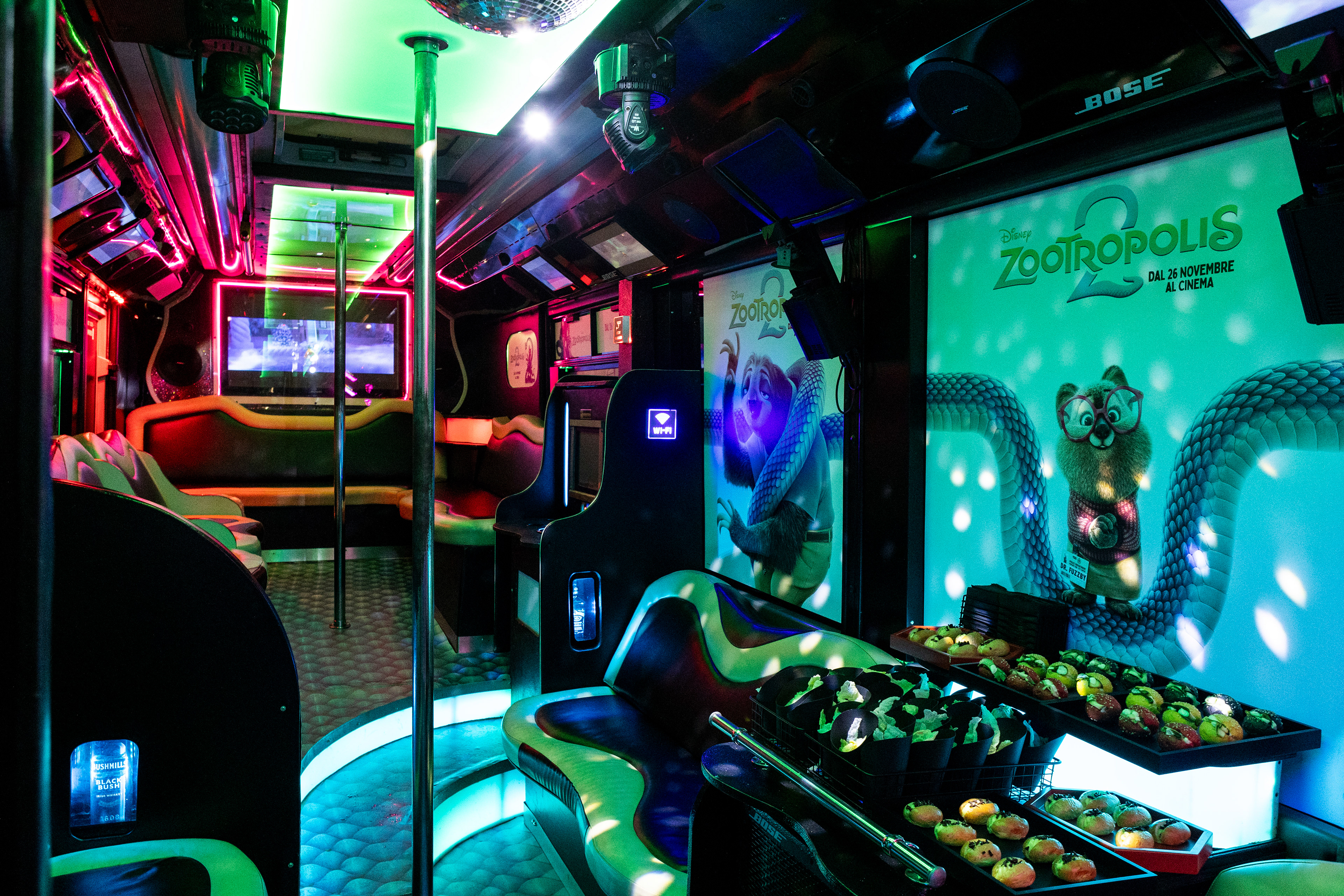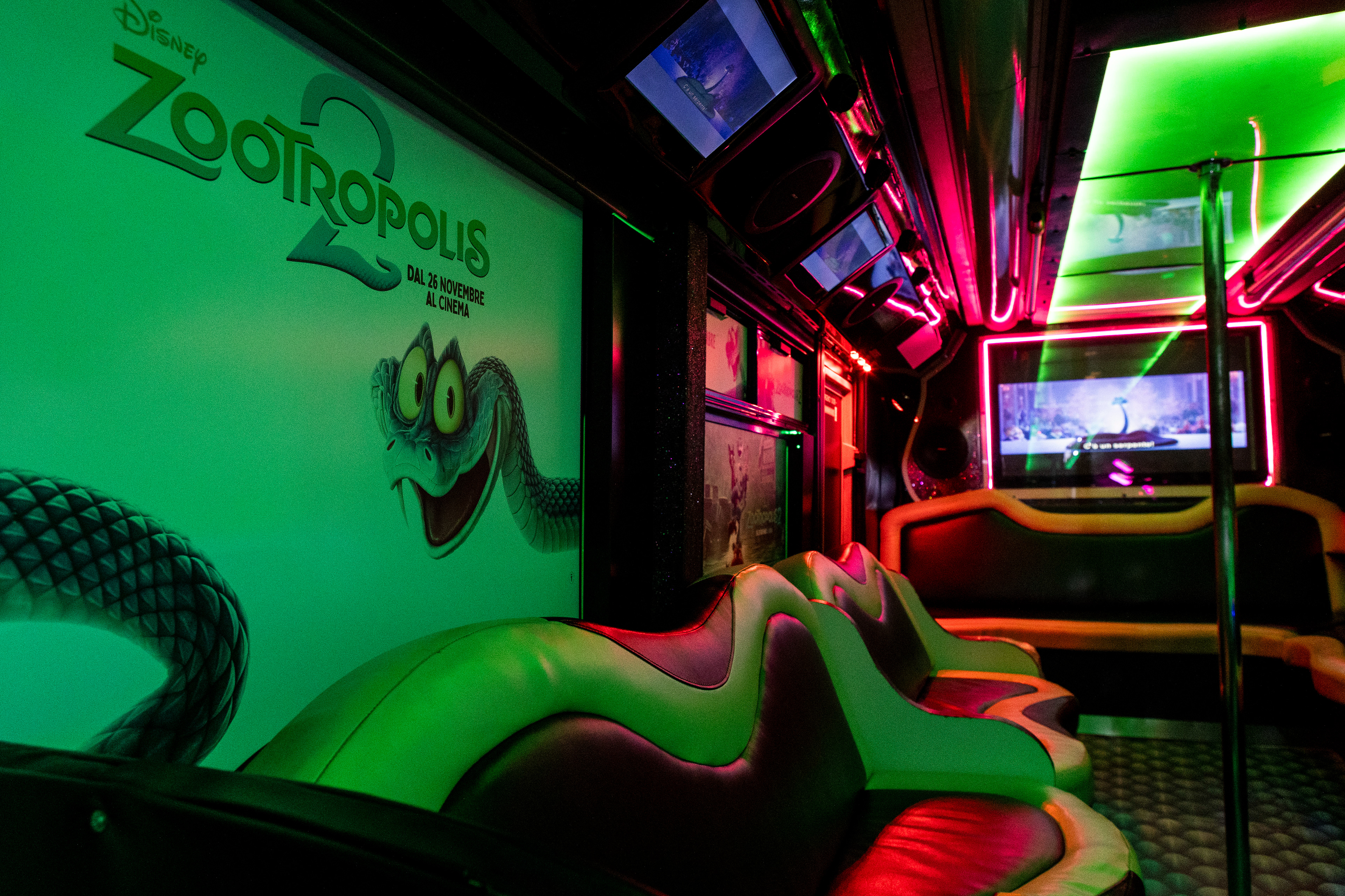 Il party bus taggato Zootropolis2 per accompagnare gli influencer e le celebrities al Cinema Moderno di Roma per la prima in esclusiva del film Disney