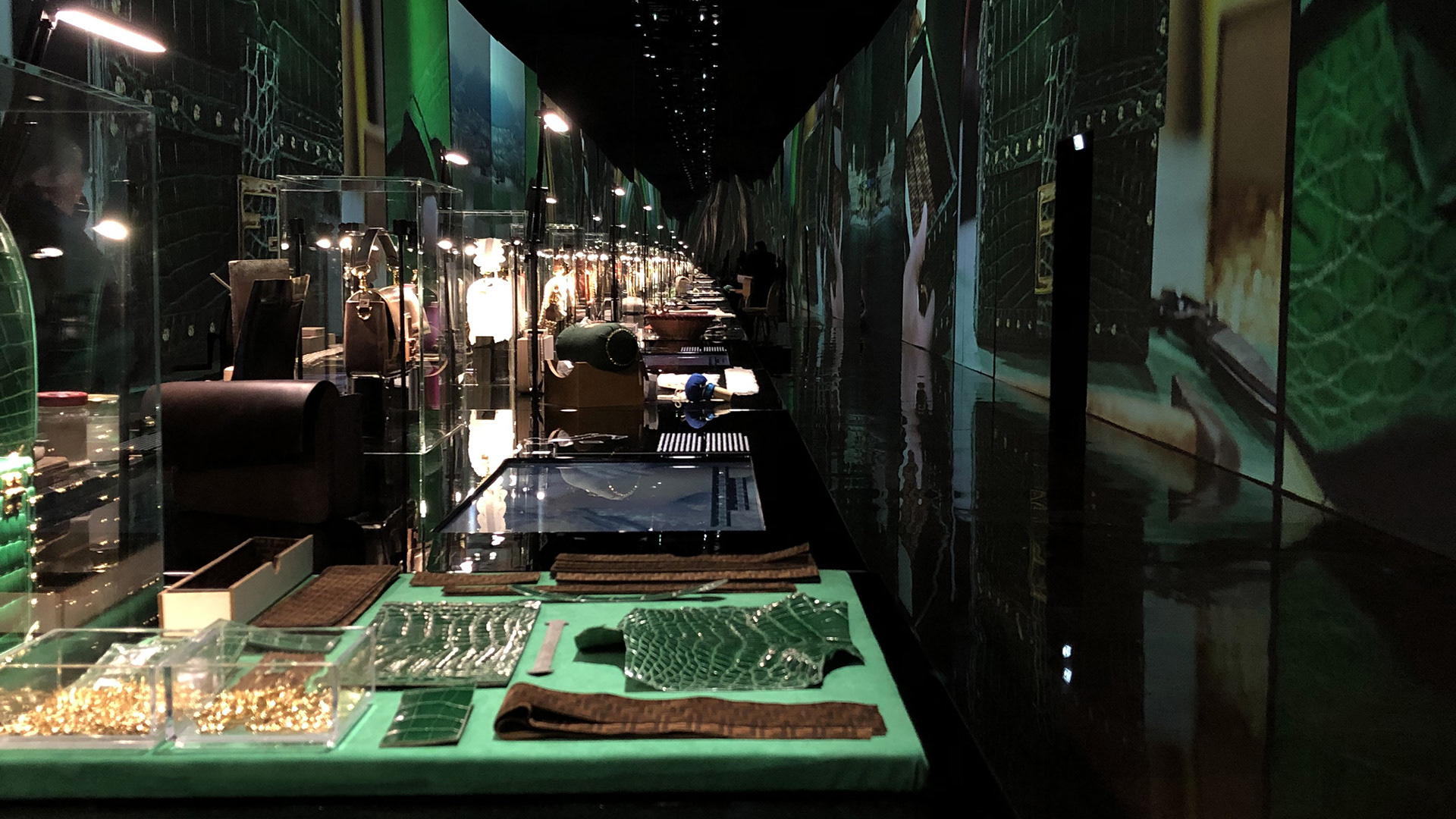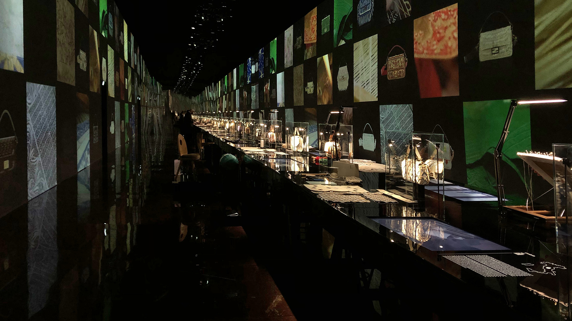 La mostra, progettata da Bureau Betak e realizzata da Redstudio Allestimenti, vuole omaggiare l’iconica borsa del marchio Fendi: la Baguette. Hand in Hand, con il suo allestimento che spazia all’infinito, mette in mostra 20 Baguette reinterpretate da 20 artigiani provenienti da differenti regioni italiane. I tavoli espositvi in mdf laccato nero, sono stati progettati e realizzati integrando monitor, teca di vetro e impianto illuminazione
