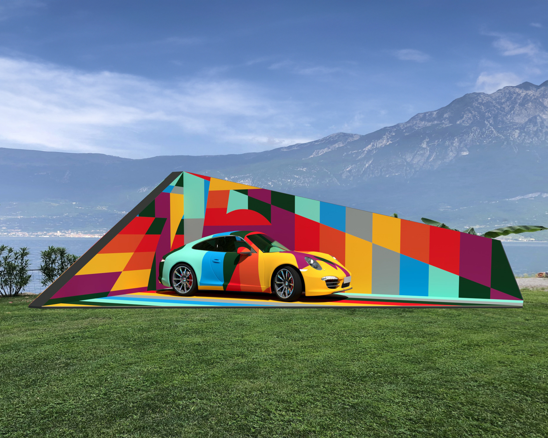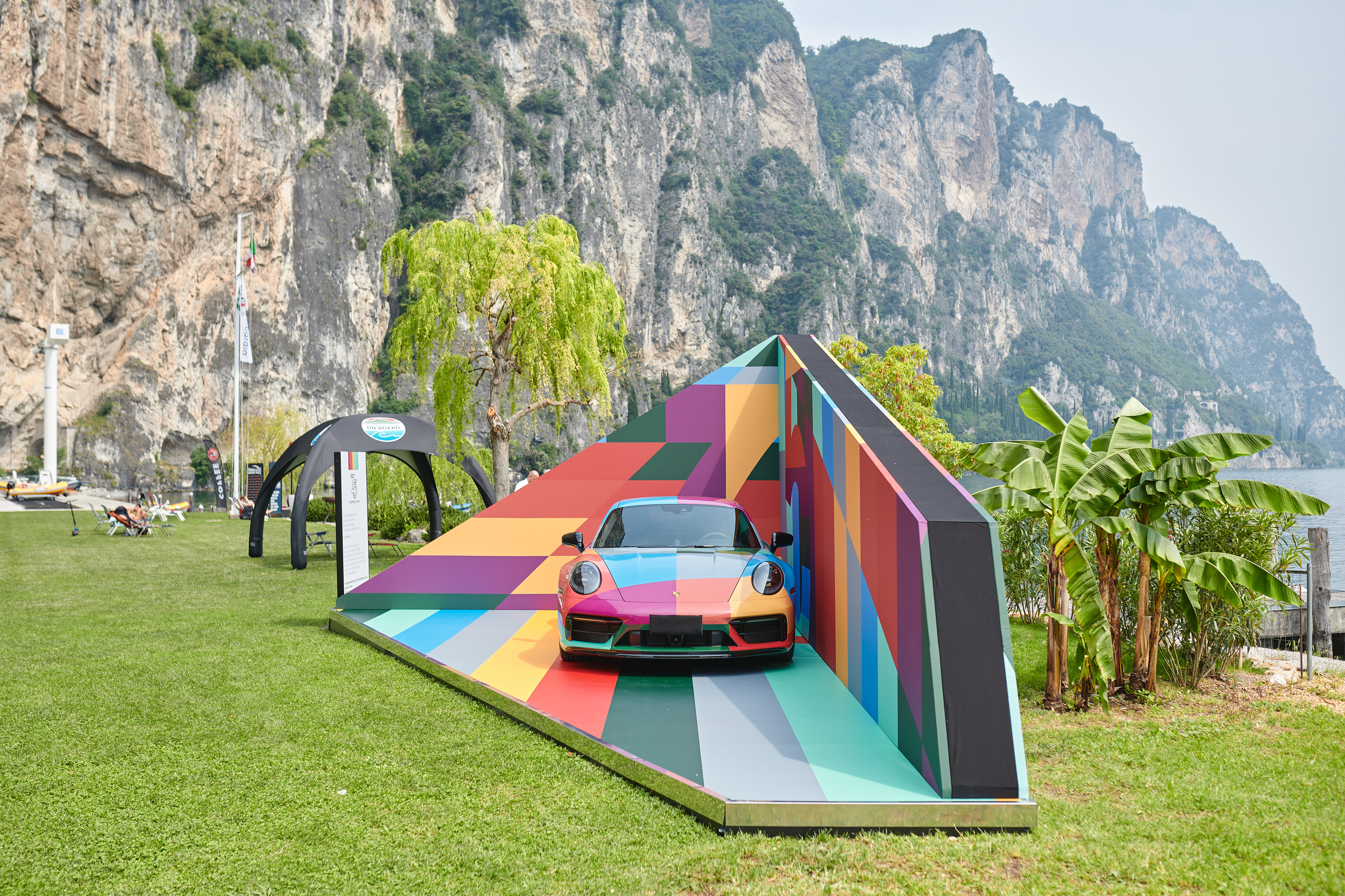 Nella tappa di Campione del Garda, in occasione del 75esimo anniversario di Porsche, abbiamo realizzato un car display mettendo in risalto l'identità del brand con i colori che hanno fatto la sua storia